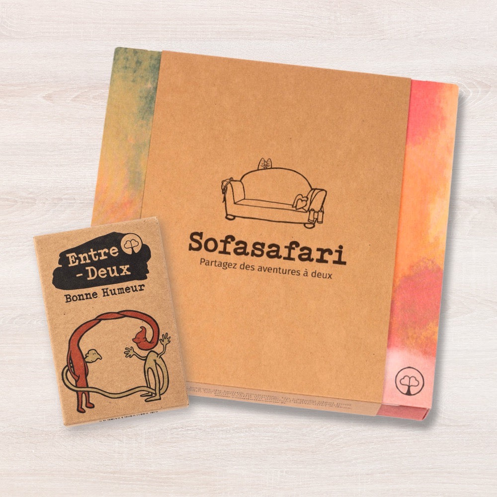 Le duo Sofasafari et Entre-Deux Bonne Humeur associe un jeu dâaventure et un jeu de questions pour couple. Pour partager un bon moment en couple et sâamuser ensemble.
