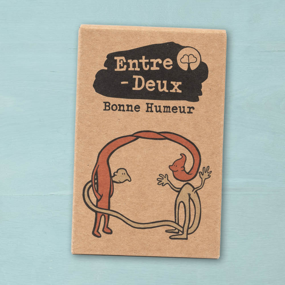 Câest ainsi quâest nĂ©e lâidĂ©e dâEntre-Deux. Lors de son dĂ©veloppement, une sĂ©rie de catĂ©gories et de questions ont Ă©tĂ© créées et Ă©valuĂ©es par nos utilisateurs-tests. Les idĂ©es qui ont obtenu la « note maximale » se retrouvent dĂ©sormais dans le jeu de cartes. Nous nous rĂ©jouissons de lire vos avis sur ce nouveau jeu.